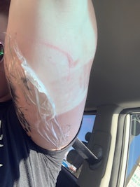 This is what a plasma sack looks like! This tattoo needs cleaned and re-bandaged.